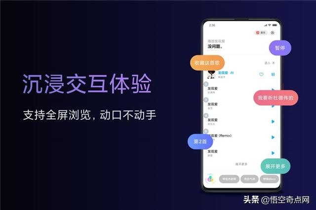 支持全屏瀏覽,無論內容多長,都可以輕松閱讀。當你使用小愛3.0時,頁面上你能看到的可以點擊的地方,都可以用語音指令來操作。例如,聽音樂,您可以輕松地選擇歌曲、裁剪歌曲、收集、播放和直接切換版本,例如“我想聽實時版本”,而不必單擊移動屏幕、移動嘴、使用語音指令輕松選擇歌曲、剪切歌曲、收集、播放和直接切換版本。比如說“我要聽live版”。(目前支持聽音樂、找視頻、查菜譜、聽有聲節目等場景,未來將拓展到更多場景中)